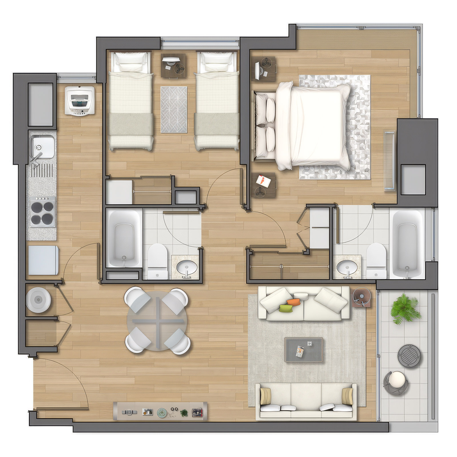 Disfruta además de un completo equipamiento: piscina para adultos y niños, quinchos, salones multiuso, sala kinder y sistema full electric con grupo electrógeno de respaldo. Todo en un entorno seguro con CCTV y control de acceso.
