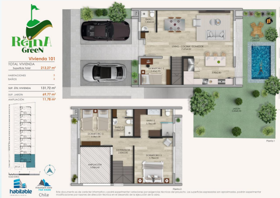 Condominio La Reina Green te invita a disfrutar de un estilo de vida único en un proyecto residencial exclusivo de solo 7 casas de 130 m², con opción de ampliación y un diseño pensado para el confort, la vida familiar y la conexión con la naturaleza. Cada vivienda cuenta con 3 dormitorios (ampliables a 4) o una alternativa con Home Office, además de 3 baños, lavadero y amplios jardines privados que brindan independencia y bienestar.